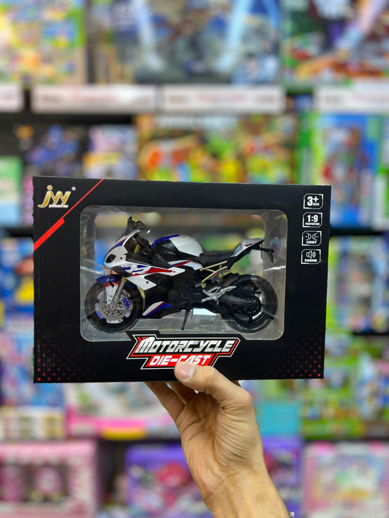ماکت موتورسیکلت دایکاست مدل اسپرت 1:9 . یک ماکت زیبا و دقیق از موتورسیکلت اسپرت با مقیاس 1:9، مناسب برای کلکسیونرها و کودکان بالای 3 سال. این مدل با طراحی حرفهای، جنس فلزی (دایکاست) و ویژگیهایی مانند نورپردازی، صدای موتور و چرخهای متحرک، تجربهای جذاب برای بازی و نمایش فراهم میکند. مشخصات دستهبندی: اسباببازی و کلکسیونی برند: JIN XIN مدل: اسپرت 1:9 رنگ: سفید، آبی و قرمز جنس: دایکاست (فلزی) ابعاد: 20 × 6.8 × 12.5 سانتیمتر ویژگیها: دارای نور و صدا، چرخهای متحرک با کمکفنر